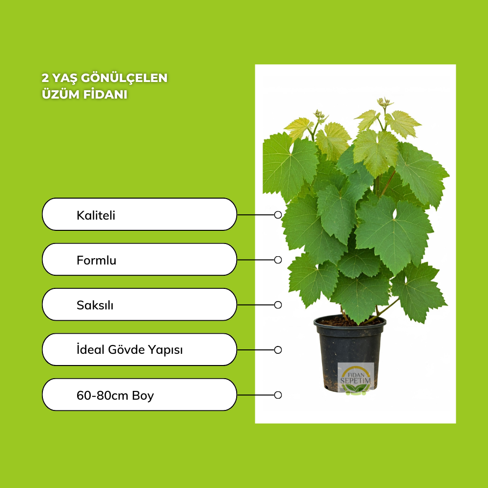 Tüm fidanlarımız siyah üretim saksısında olup, sizlere en sağlıklı şekilde ulaşır. İster yapraklık, ister sofralık olsun, geniş üzüm çeşidi yelpazemizle her zevke uygun fidan çeşitlerine sahibiz.