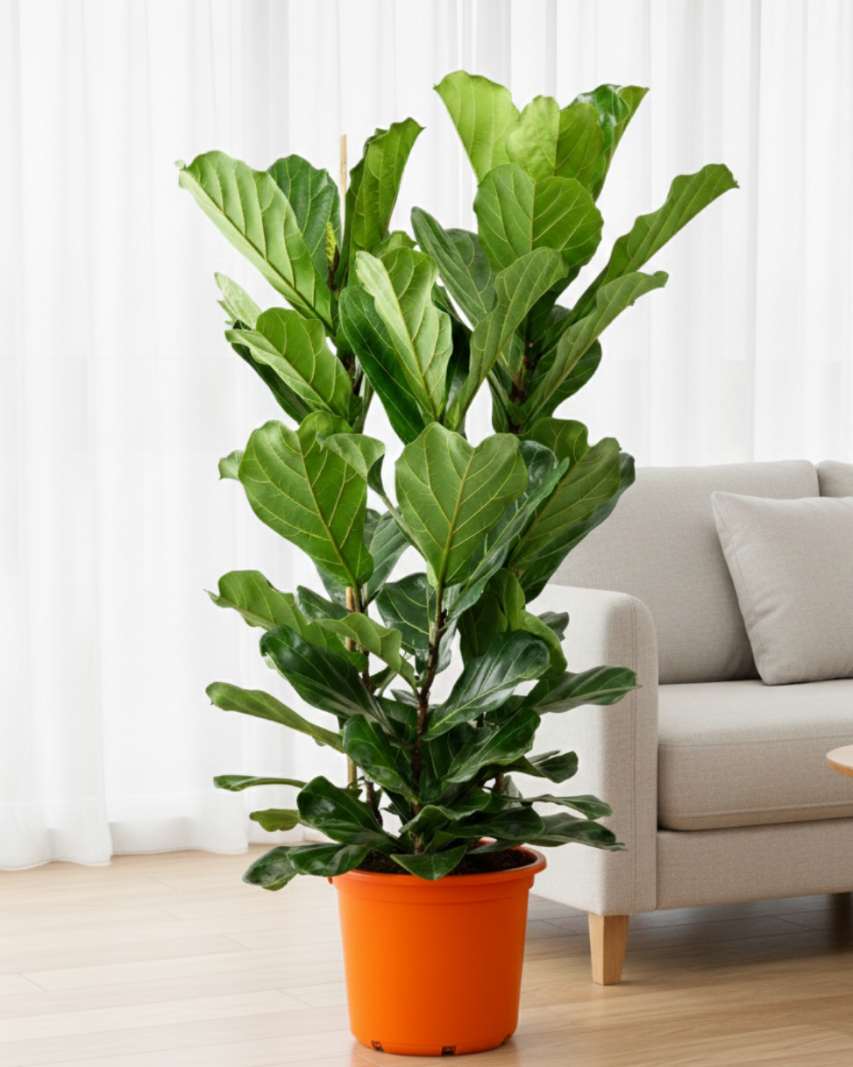 Ficus lyrata, zarif görünümü ve iç mekanlardaki dekoratif etkisi nedeniyle popüler bir seçenektir.
