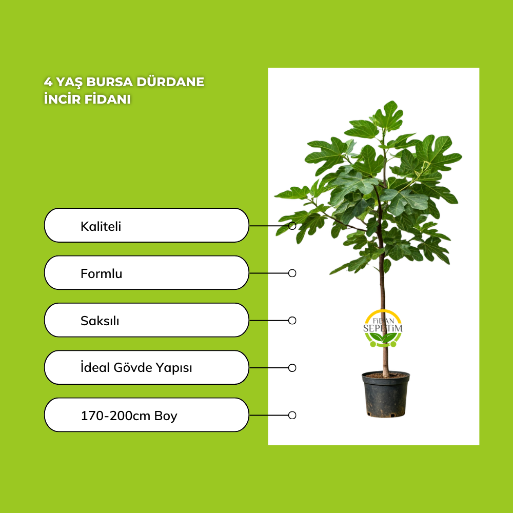 Bitki Cins/Çeşit Özellikleri4 Yaş Bursa Dürdane İncir FidanıMeyvesi iri ve lezzetlidir.