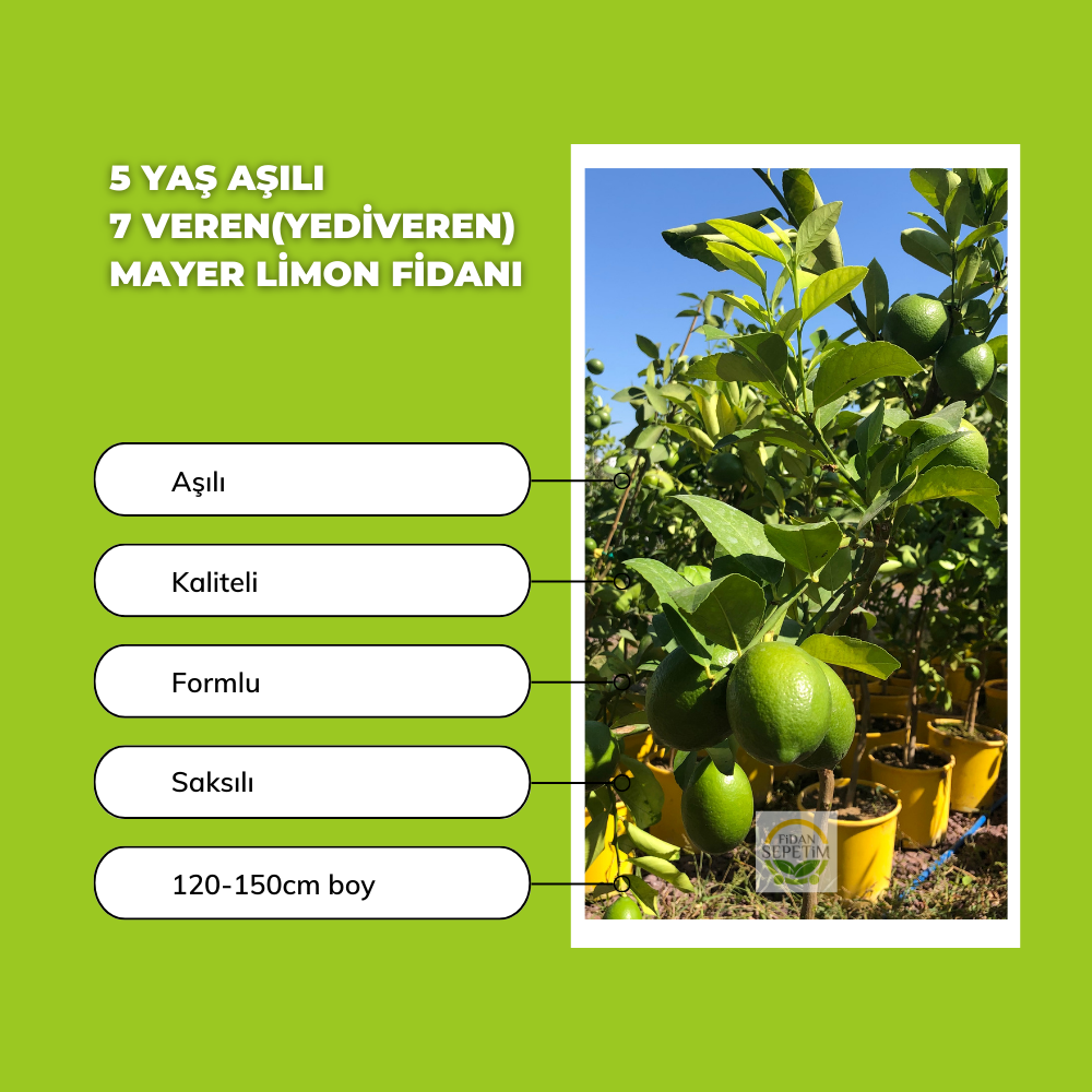 5 Yaş Aşılı 'YEDİVEREN' Mayer Limon Fidanı
