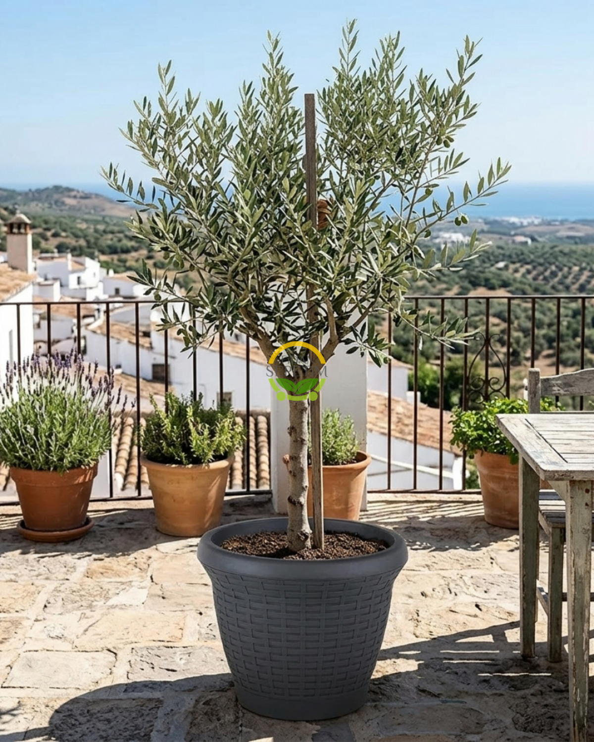 Hasır Desenli Dekoratif Saksı – 25 Litre | Antrasit