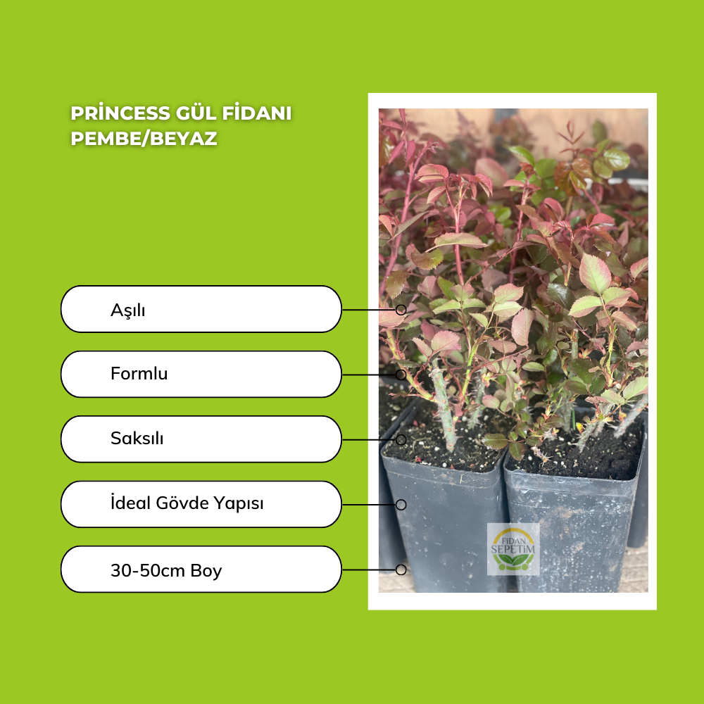 Bitki Cins/Çeşit ÖzellikleriPrincess Gül Fidanı - Pembe/BeyazGoncaları pembe/beyaz renkli ve kokuludur.
